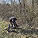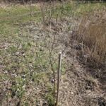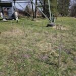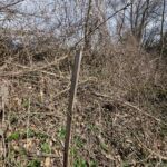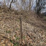Alle Jungpflanzen / Bäume, welche im Jahr 2023 gepflanzt wurden und nicht gut ersichtlich sind, wurden mit Holzpfählen „markiert“, um unter dem Jahr diese besser vor anderen schnell wuchernden Pflanzen wieder freizuschneiden. Somit kommen deutlich mehr Jungbäume durch und werden nicht erdrückt / bzw. umgeknickt. Zudem sind die Holzpfähle für viele Bäume ein helfende Stütze.